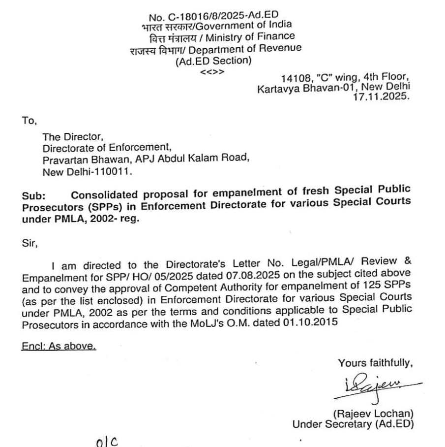 ED द्वारा किया गया यह नियुक्ति निर्णय राज्य में लंबित और आगामी PMLA मामलों की पैरवी को और अधिक सशक्त बनाएगा। दोनों अधिवक्ता अलग-अलग स्पेशल कोर्ट्स में मनी लॉन्ड्रिंग से संबंधित मामलों में ED की ओर से प्रतिनिधित्व करेंगे और कानूनी प्रक्रिया को गति प्रदान करेंगे।