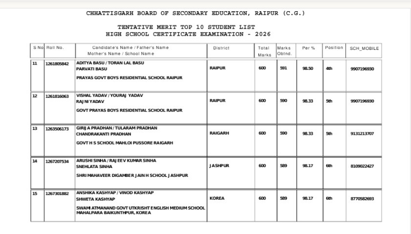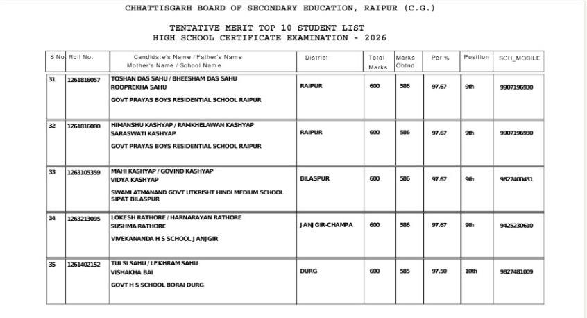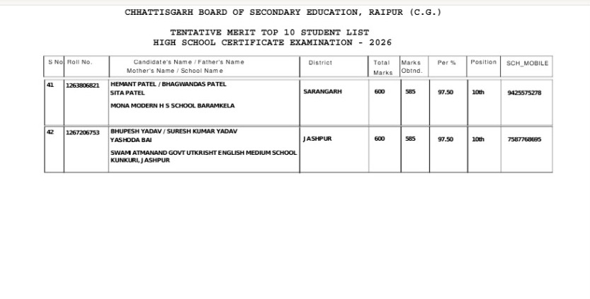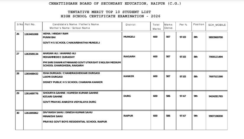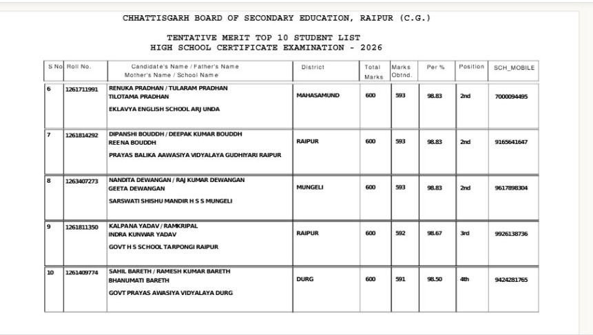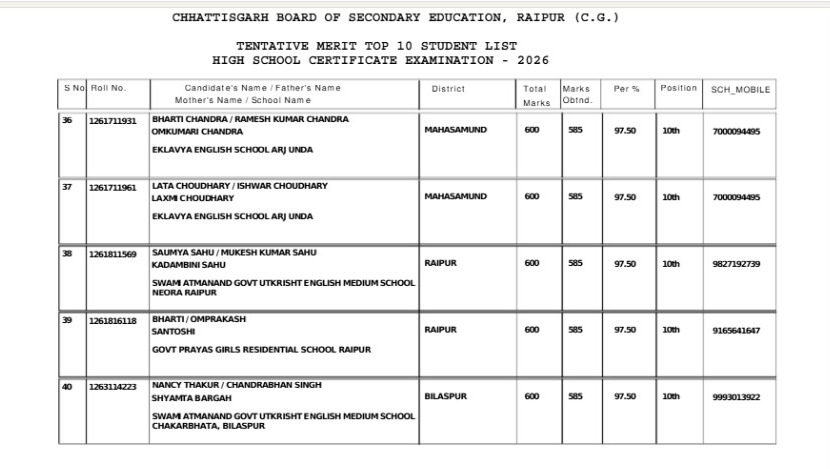 CGBSE Class 10th Result 2026: 10वीं में 3 छात्रों ने किया टॉप, महासमुंद की बेटियों ने मारी बाजी